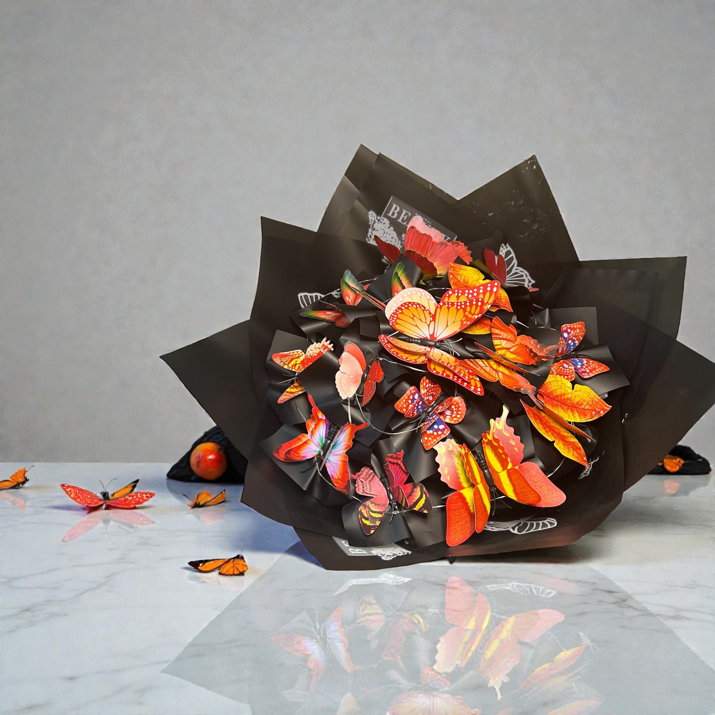 Işıklı Turuncu Kelebek Buketi