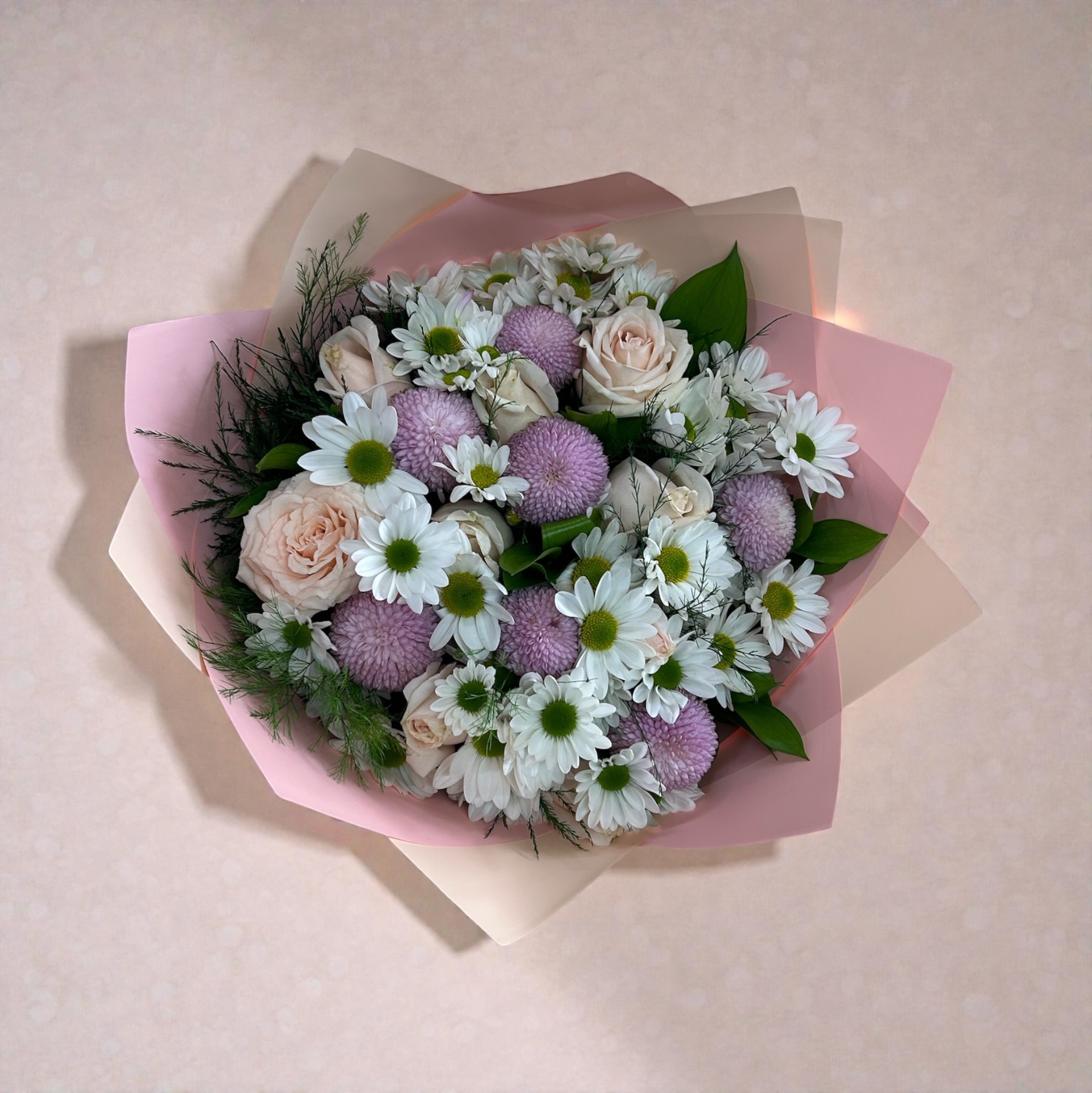 Lila Pembe Papatya Gül Buketi